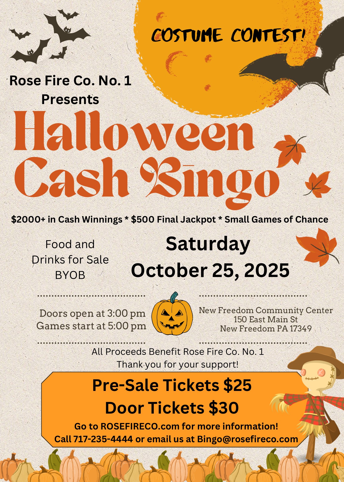 Come out and support Rose Fire Co. No.1 with our annual Halloween Cash Bingo.